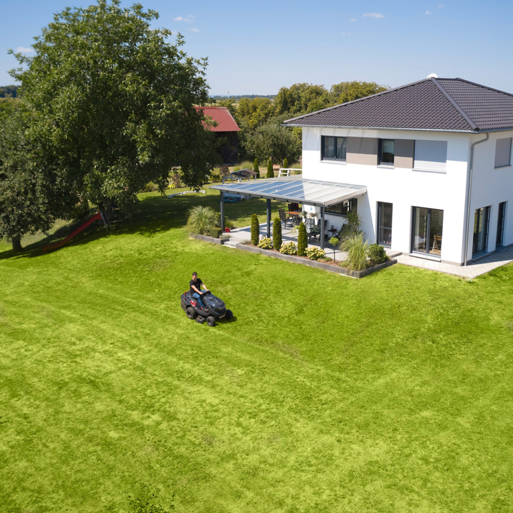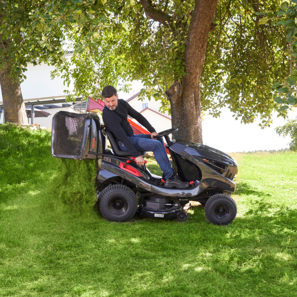 Ha szeretné használni ennek a traktornak az opcionális mulcsozási funkcióját (mulcsozóék cikkszám: 119656), akkor szerszám nélkül átalakítható. A fokozatmentes lábhidrosztatika lehetővé teszi a könnyed fűnyírást az ergonomikusan elhelyezett pedálokkal és az optimális üléspozícióval. A nagy, 220 literes gyűjtődoboz egy teleszkópos kar segítségével könnyedén üríthető az ülésből.